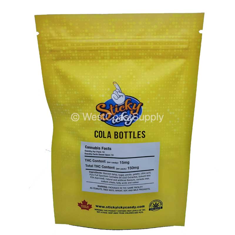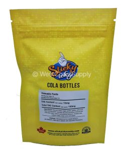 Buy Sticky Icky Cola Bottles 150mg. The Sticky Icky Cola Bottle comes with 15mg of pure cannabis oil on each candy and each Cola Bottle pack comes with 10 pieces so you get 150mg of pure THC oil in every pack. Unlike many other edible makers in USA, Sticky Icky does not dilute their cannabis oil. What you see is what you get.These Sticky Icky Cola Bottles are a great way to consume cannabis discreetly.